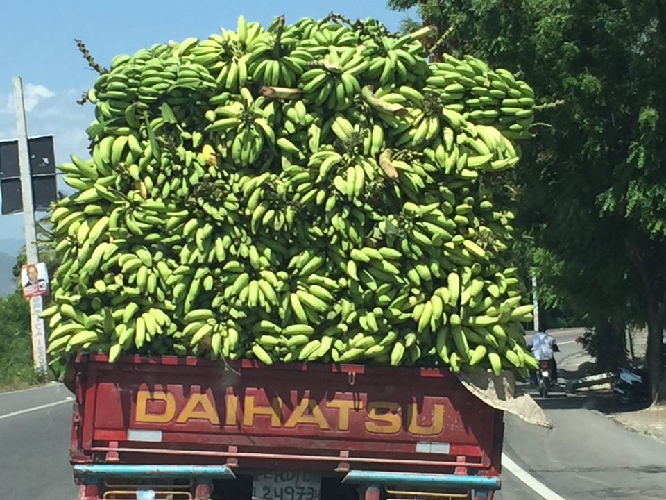 Sí, así es que transportan los plátanos alrededor del país, parece sobrecargado pero funciona así. Nosotros los dominicanos adoramos el plátano y lo podríamos comer de desayuno, comida & cena.
