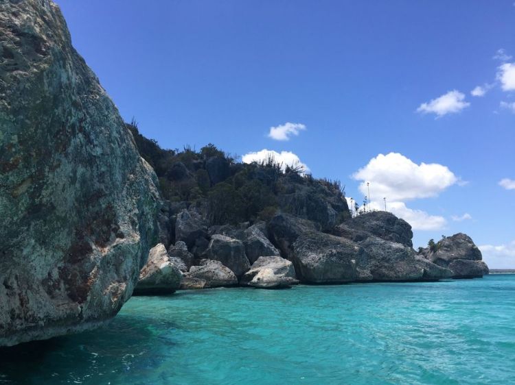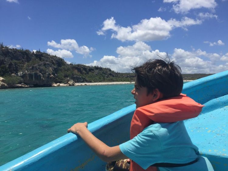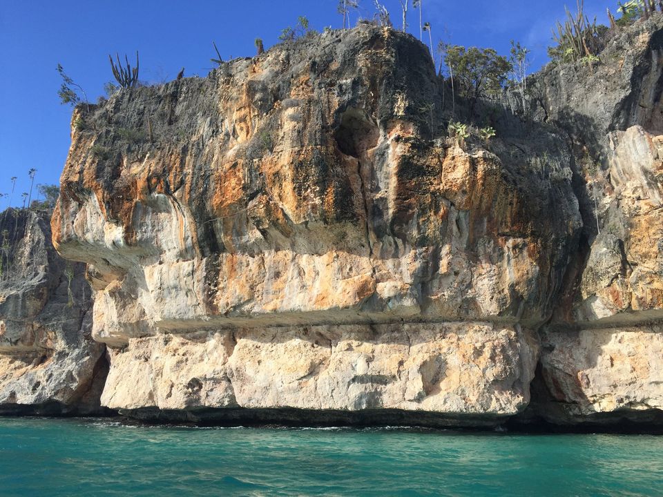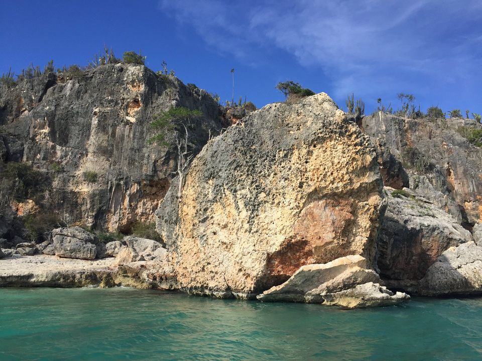 From Cabo Rojo you catch a boat to Bahia de las Águilas, it is a beautiful ride that takes less than 20 minutes, and you get to see the rock formations around by the water.