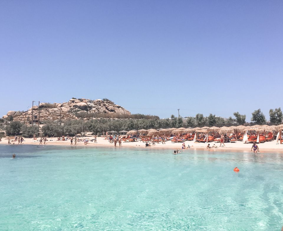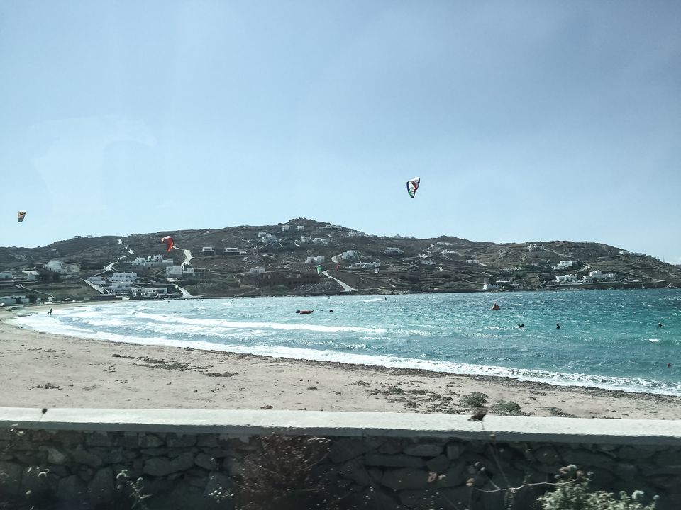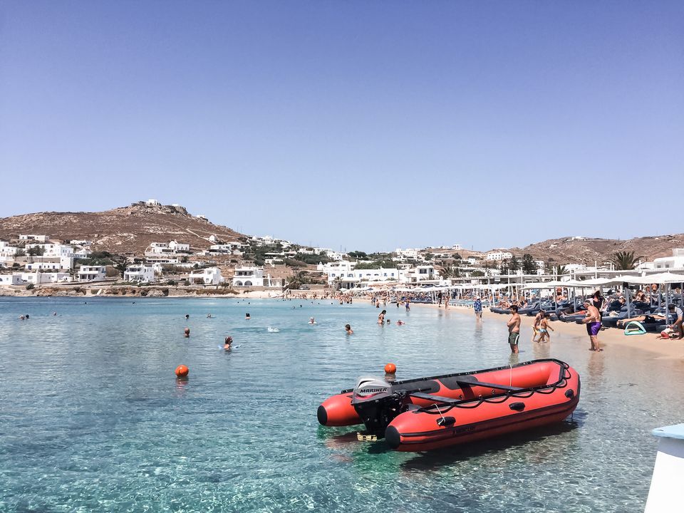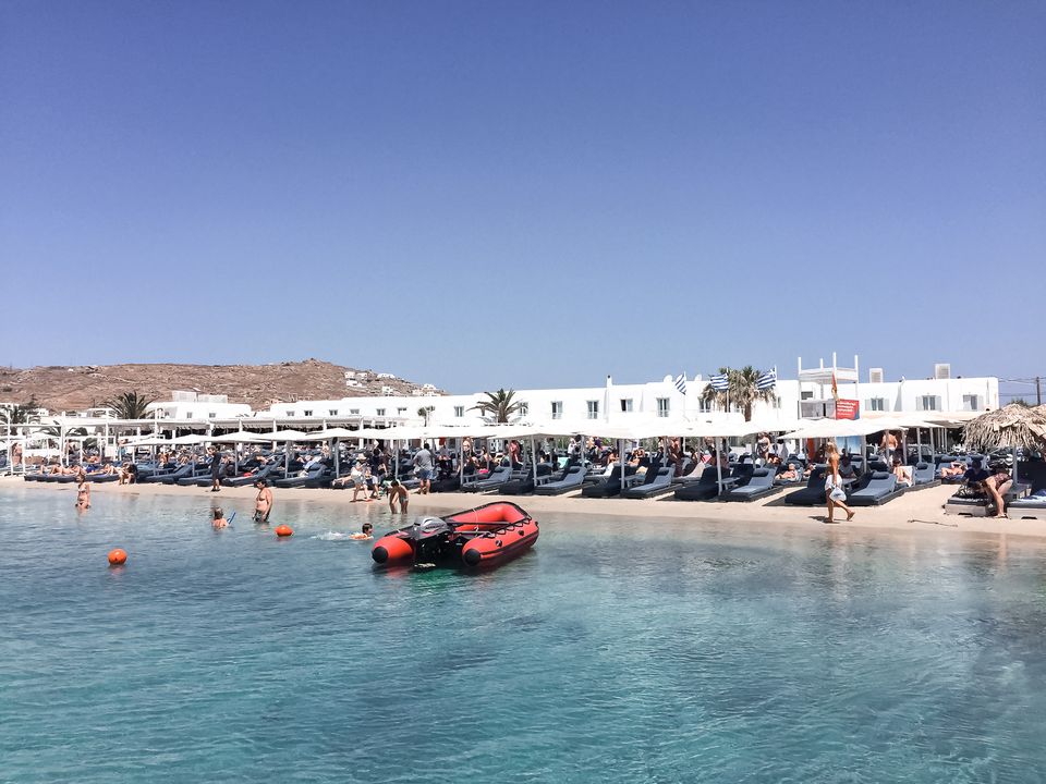 La playa de Ornos estaba a unos pasos de mi hotel y me dirigí allí después del desayuno para tomar un taxi acuático hasta Super Paradise, fue sugerencia de un amigo pasar el día allí, por suerte en el camino pude ver brevemente otras playas.