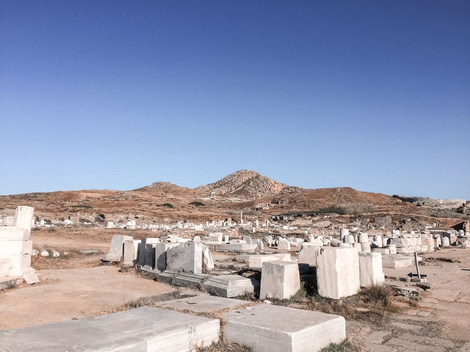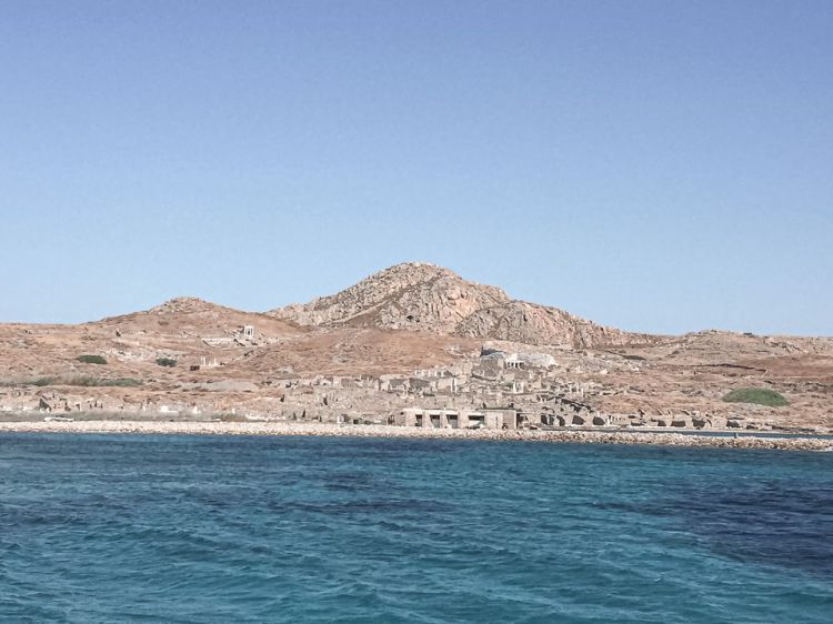 Making our way to Delos, which is a UNESCO World Heritage site. According to Greek mythology, Apollo was born there.