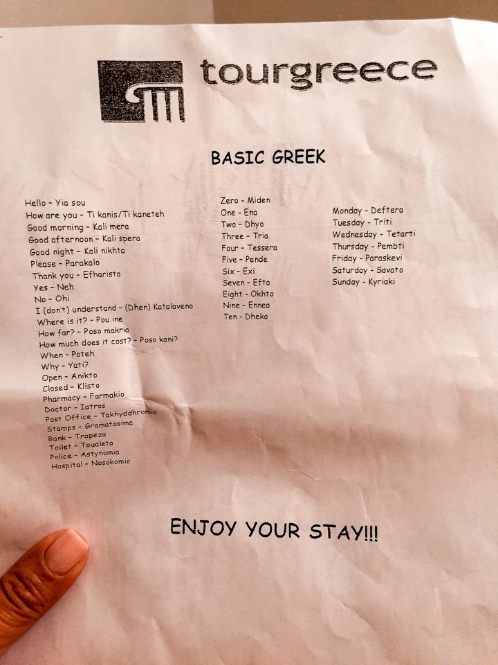 When checking in our hotel, they gave us this lovely list with basic greek to practice, isn’t it awesome??