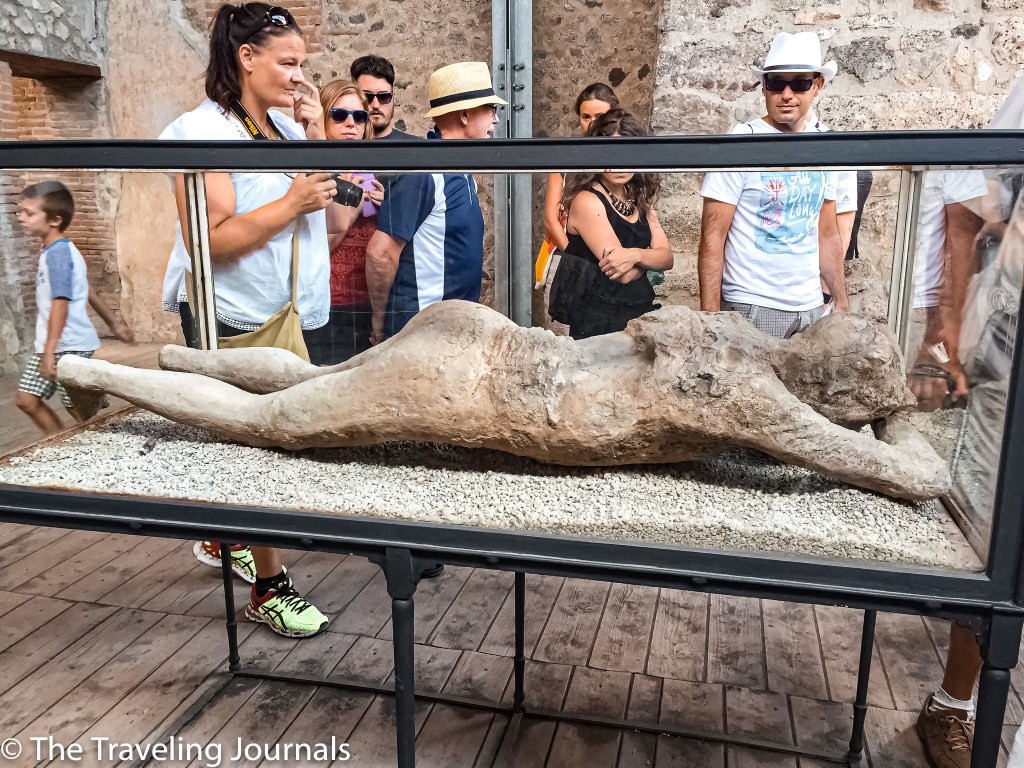 Con la erupción de Vesubio, hubo muchas muertes con más de 1,000 cuerpos encontrados al excavar la ciudad. Restos de esqueletos por todos lados, sin embargo, la ceniza cuando se endureció creó un molde del cuerpo de cada persona fallecida, los arqueólogos decidieron verter yeso en esos moldes de lava que demuestra justo como quedaron en el momento de.