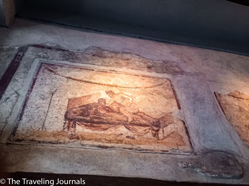 The Lupanar of Pompeii was quite a surprise for me. Lupanar means brothel and yes I know sex sells but I would have never imagined they would be so graphic and to the point. Right outside each room, there was an erotic painting showcasing the service that could be performed in each room.