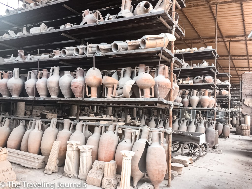 Storage of many archeological pieces found all over Pompeii