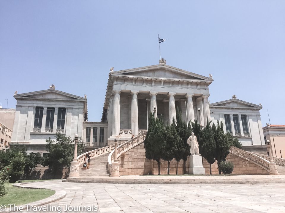 De camino a su oficina, pasé por la Biblioteca Nacional de Atenas, que figura como uno de los edificios neoclásicos del centro de Atenas.