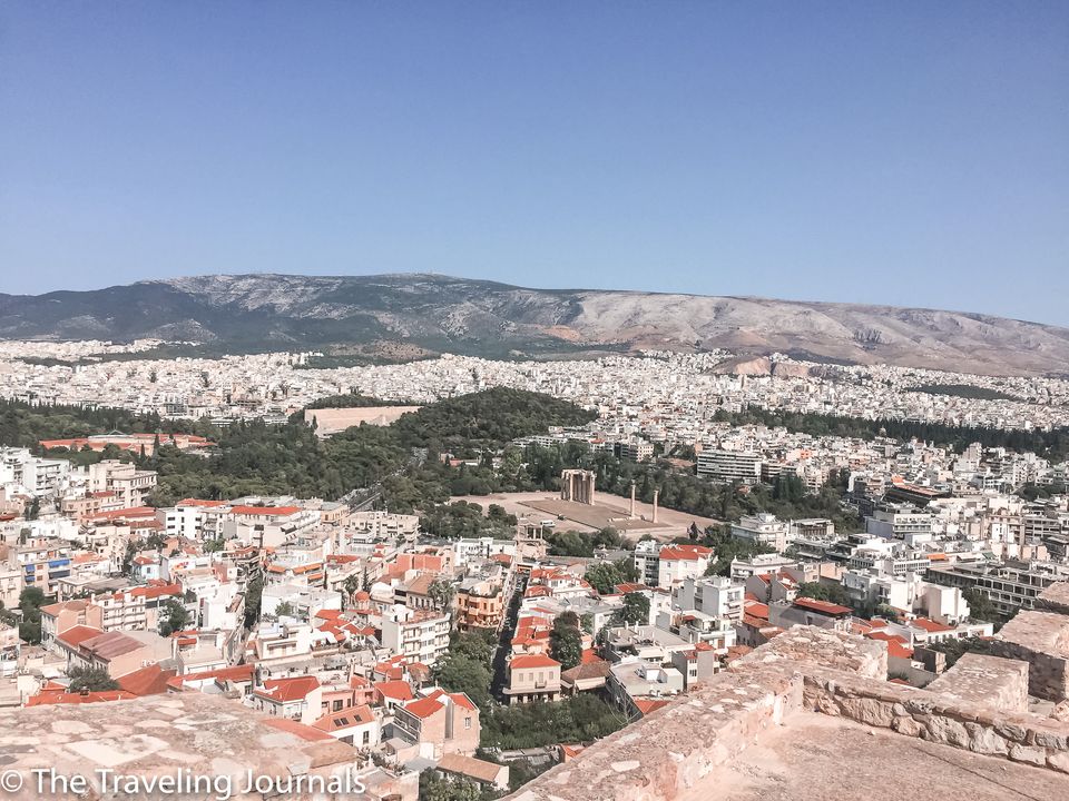 View of the city from Acropolis, where you can see Hadrian’s arch and also the Temple of Olympian Zeus