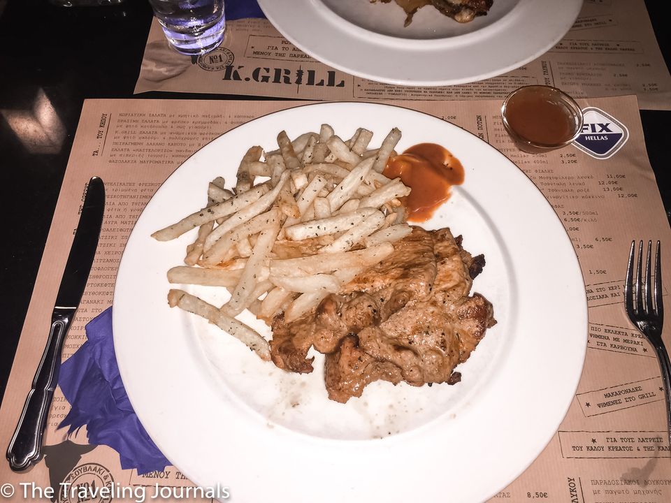 Comí cerdo con papas fritas y la carne estaba tierna y jugosa … ¡Quedé extremadamente satisfecha! Mi amiga ordenó el Moussaka, que es un plato a base de berenjenas, patatas y carne molida.