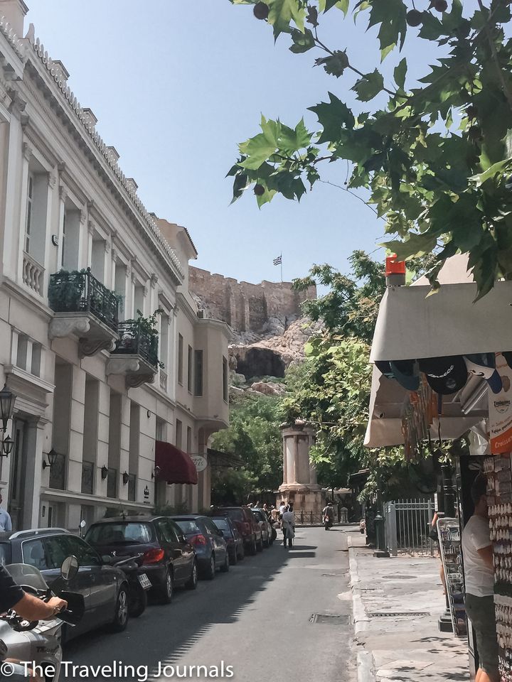 At the far end, you can see the Acropolis peaking up, and underneath, what looks like a cylinder… its the Choragic Monument of Lysicrates, which is known as the first use of the Corinthian order on the exterior of a building.
