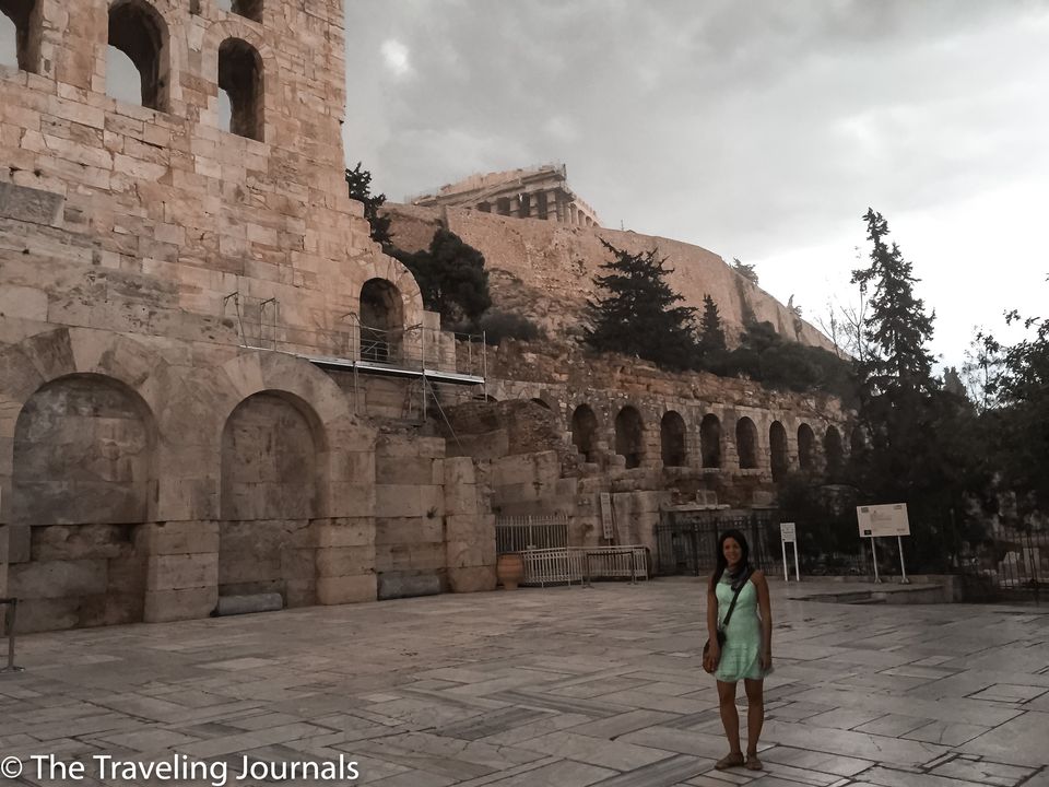 Este es el Odeón de Herodes Ático o Herodeón, es un teatro romano de piedra y hasta el día de hoy se utiliza como sede de algunos conciertos. Es uno de los mejores y más antiguos teatros al aire libre del mundo.