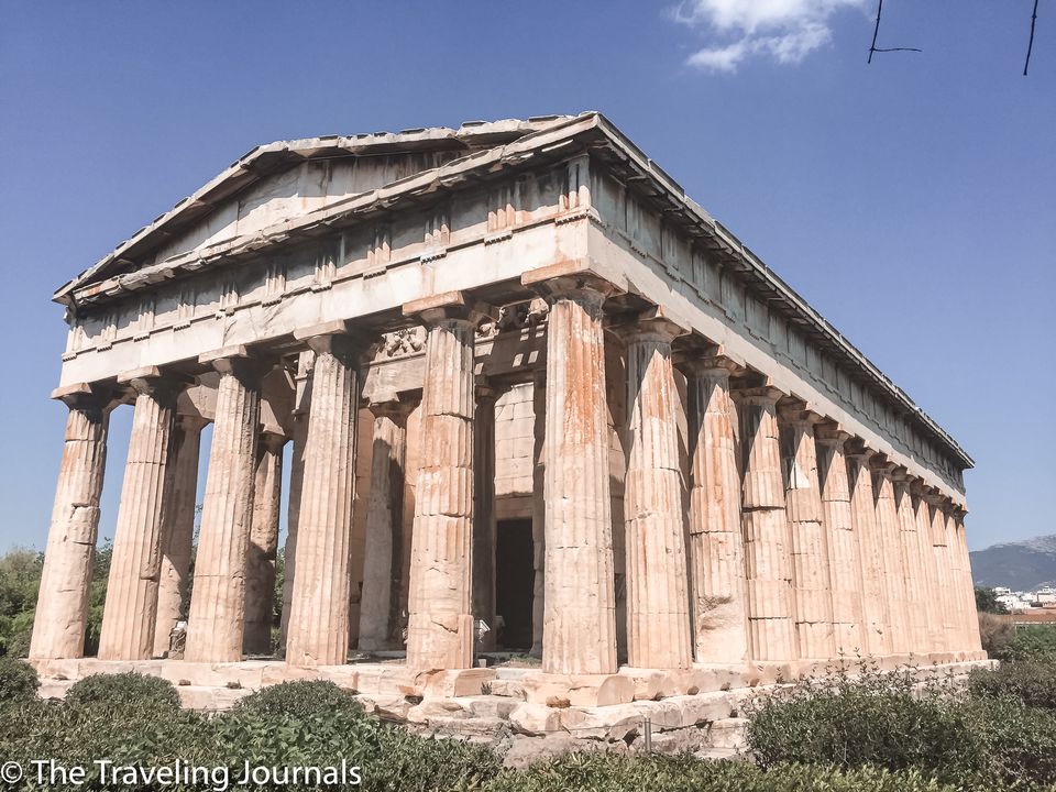 Mi siguiente parada fue el antiguo Ágora de Atenas y mi primer sitio fue el Templo de Hefesto, que está muy bien conservado. Hefesto era el dios patrón de la artesanía, el fuego y el trabajo del metal.
