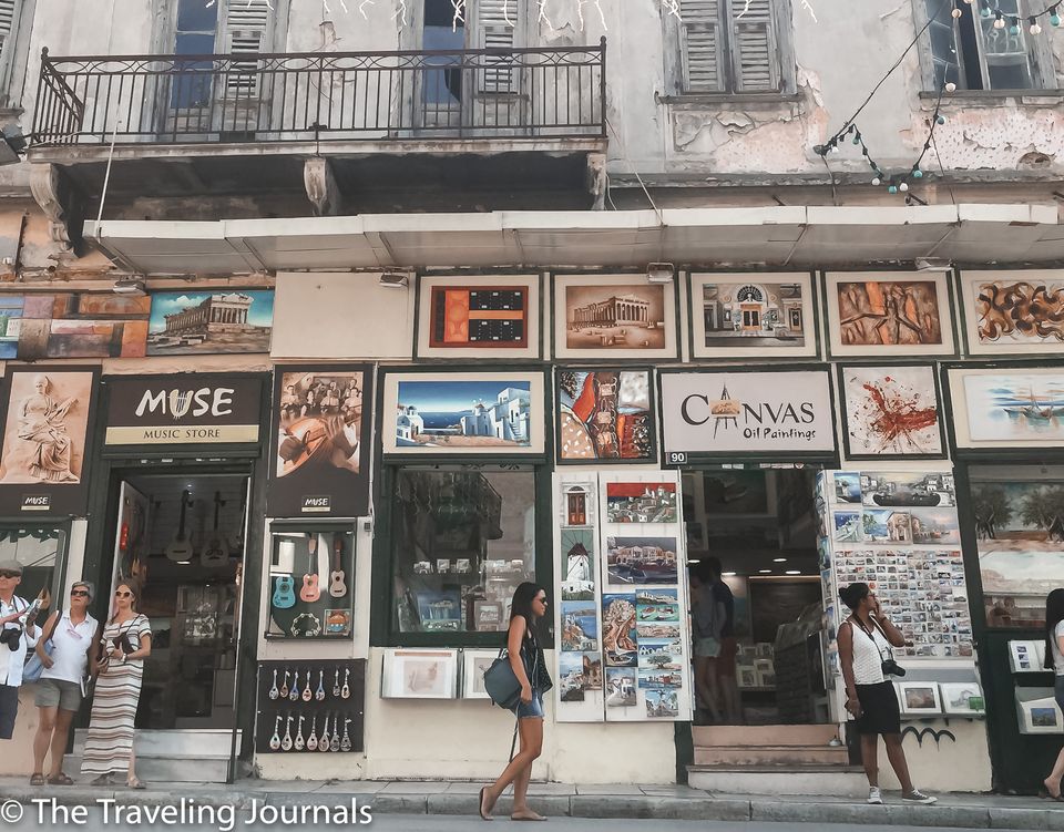 Checking out the souvenir shops around Plaka, you can buy clothes, shoes, and small souvenirs.