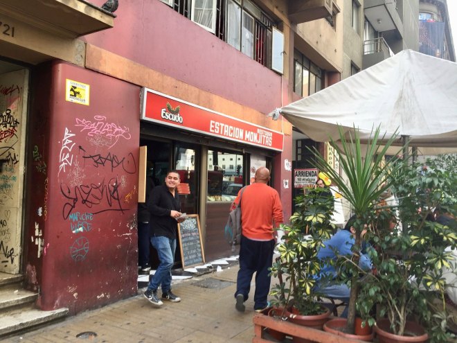 Mientras iba en el Tour, le pregunte a mi guía por algún lugar donde ordenar algo rápido de comer y me sugirió estación Monjitas, es bien local, nada de turistas y van cocinando las empanadas a la orden.