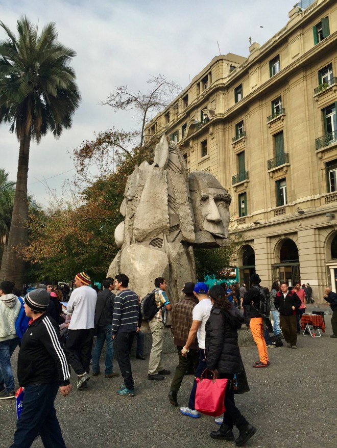 Mi última parada en Sur América! Santiago de Chile!! Mi visita en la capital de Chile fue corta pero suficiente, después de visitar la isla de Pascua, volé de regreso a Santiago donde permanecería 2 noches e hice algo típico de mochileros…hacer planes sin hacer reservación…había decidido que me quedaría en el mismo hostal de días antes pero cuando llegué me entero de que estaba completamente lleno, me dio un poquito de pánico porque era de noche y me tocaría buscar otro lugar a esas horas, pero por suerte me dijeron que había otro hostal a pocos pasos.