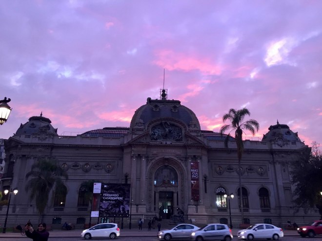 Gorgeous sunset as we walked by the Chilean Museum of Fine Arts.