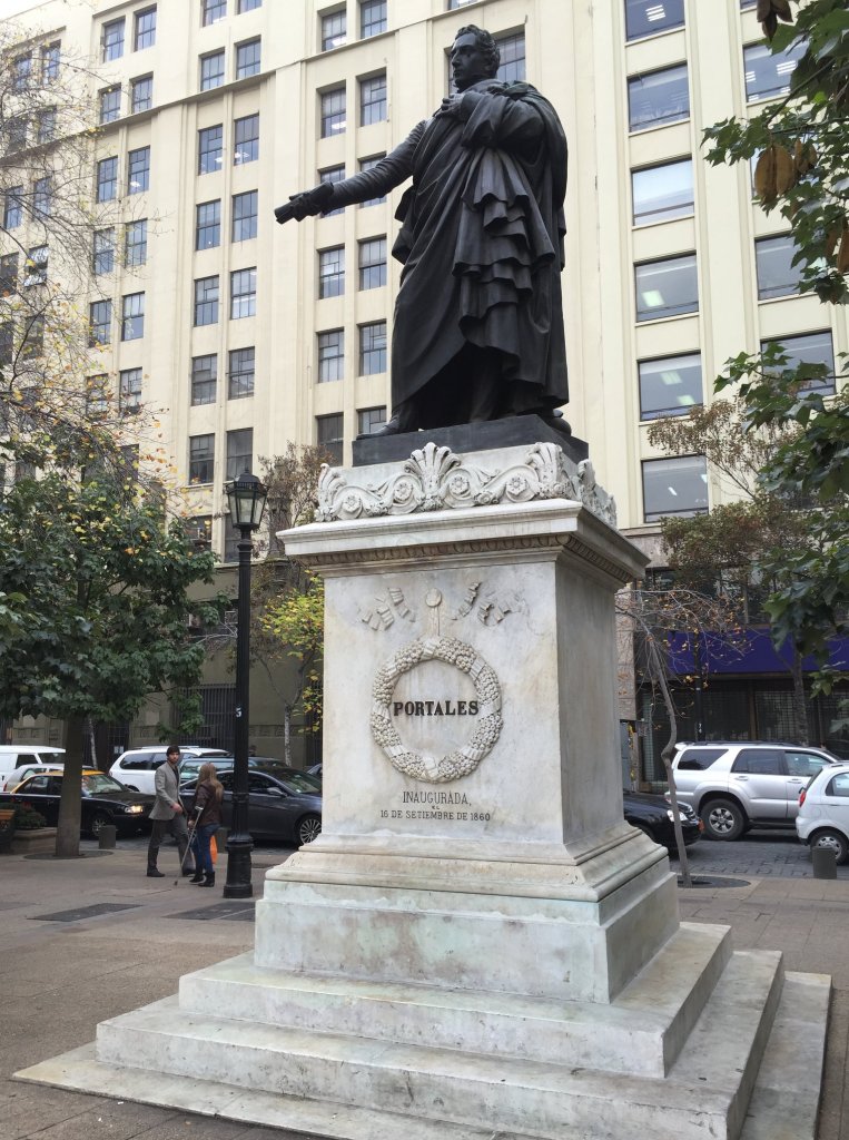 Escultura en honor a Diego Portales, quien jugo un rol importante en la política, ayudando a desarrollar la constitución del 1833.