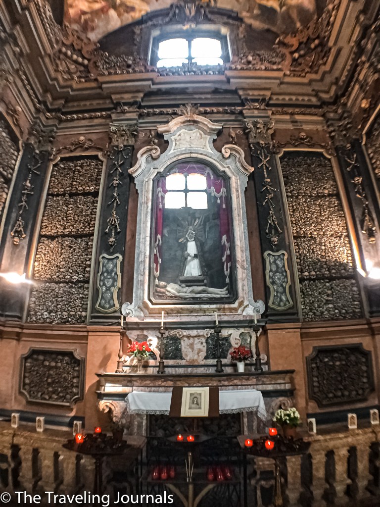 It’s a church that has become well known for its Ossuary. I learned that word by visiting. An Ossuary could be a box, a room, or a building used as the last resting place of skeleton remains. When a cemetery close by reached its capacity, skeletons were removed and placed in the Ossuary. It looks quite amazing and creepy all at the same time.