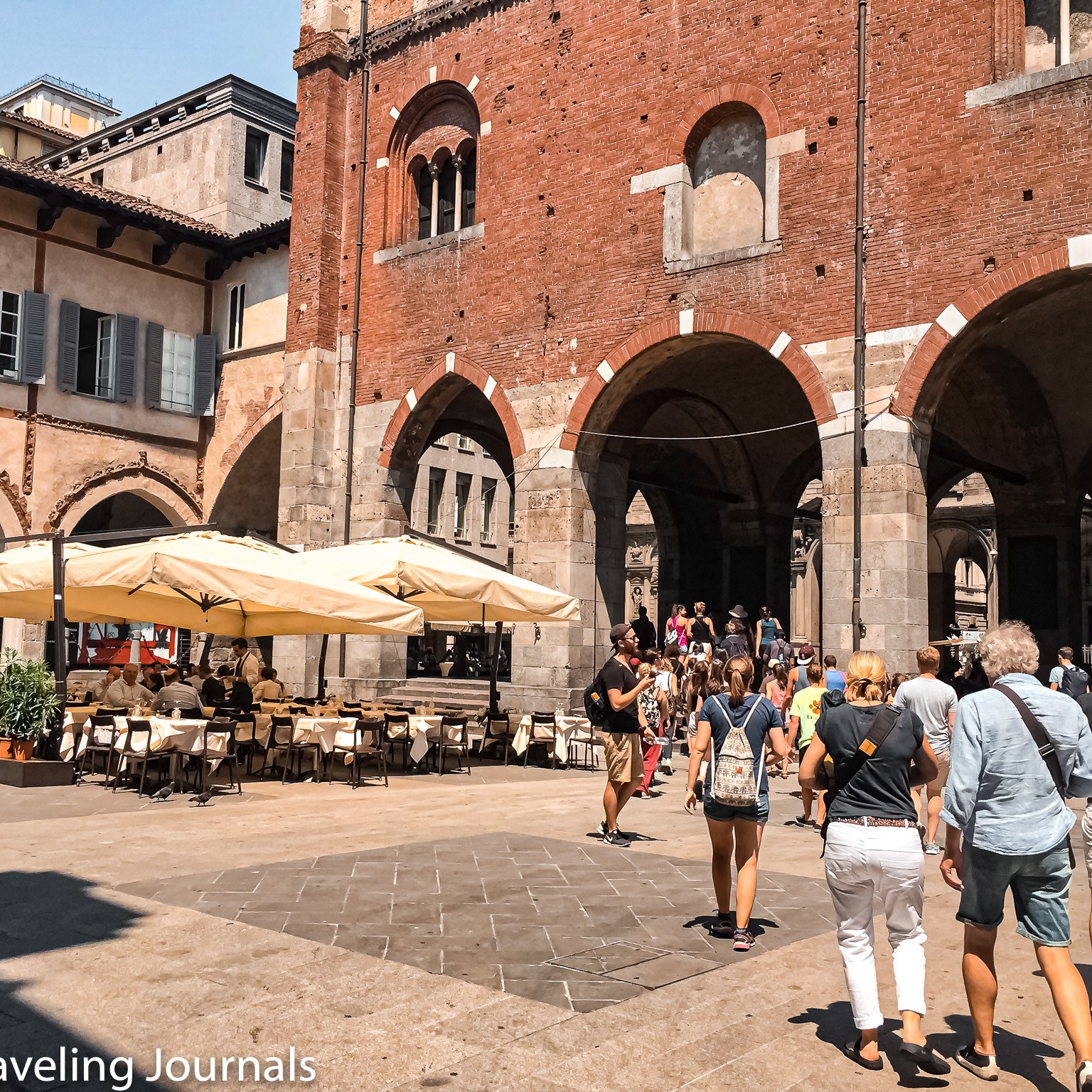 Conocida en italiano como Piazza Mercanti, es el verdadero centro de Milán, existía mucho antes que el Duomo y era mucho más grande con seis puntos de entrada para las seis divisiones de la ciudad.