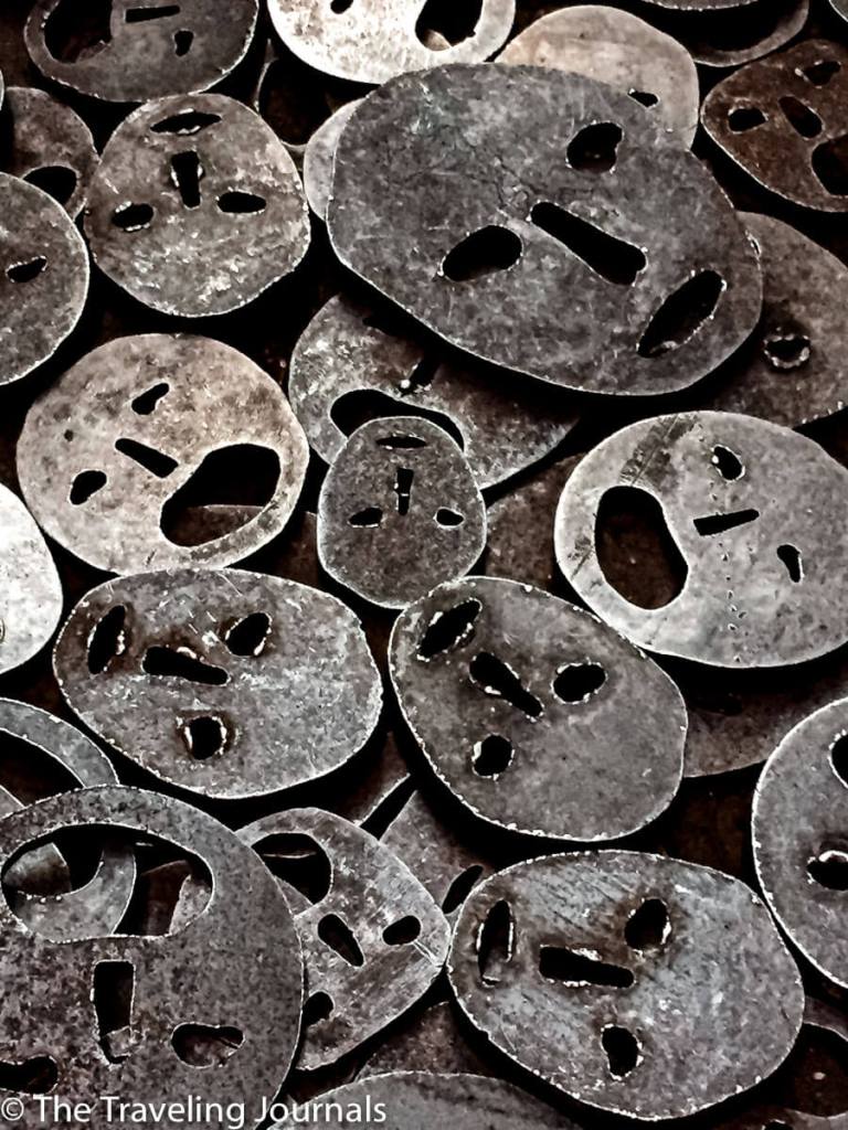 The installation shows over 10,000 flat iron disks with the shape of faces, you can walk over them, and the sound it makes represents their cry for help or as screaming silently.