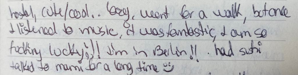 So here I share my hostel in Berlin; in my journal, I wrote: “it had a cute and cool vibe!”